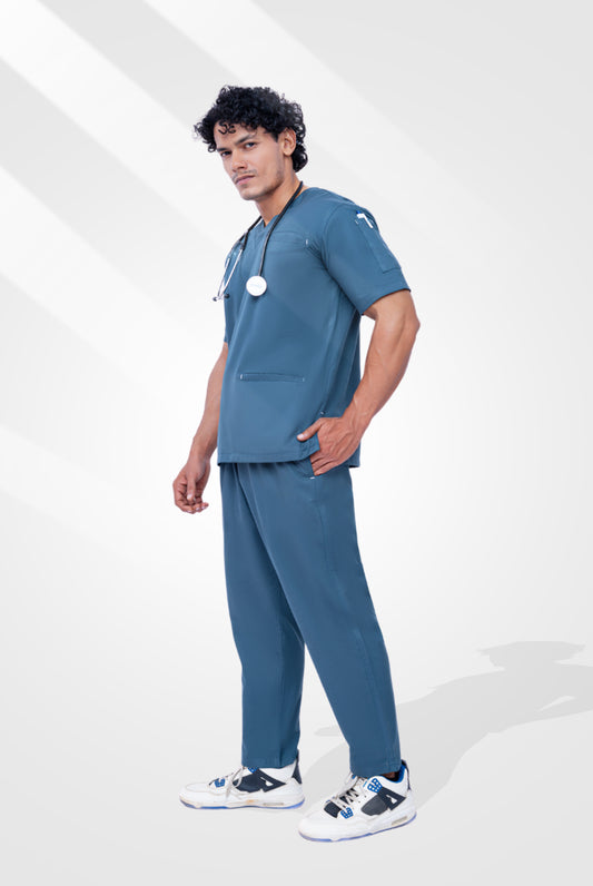 Caribbean Blue Classic Scrub Suit for Men by GTEX Apparels