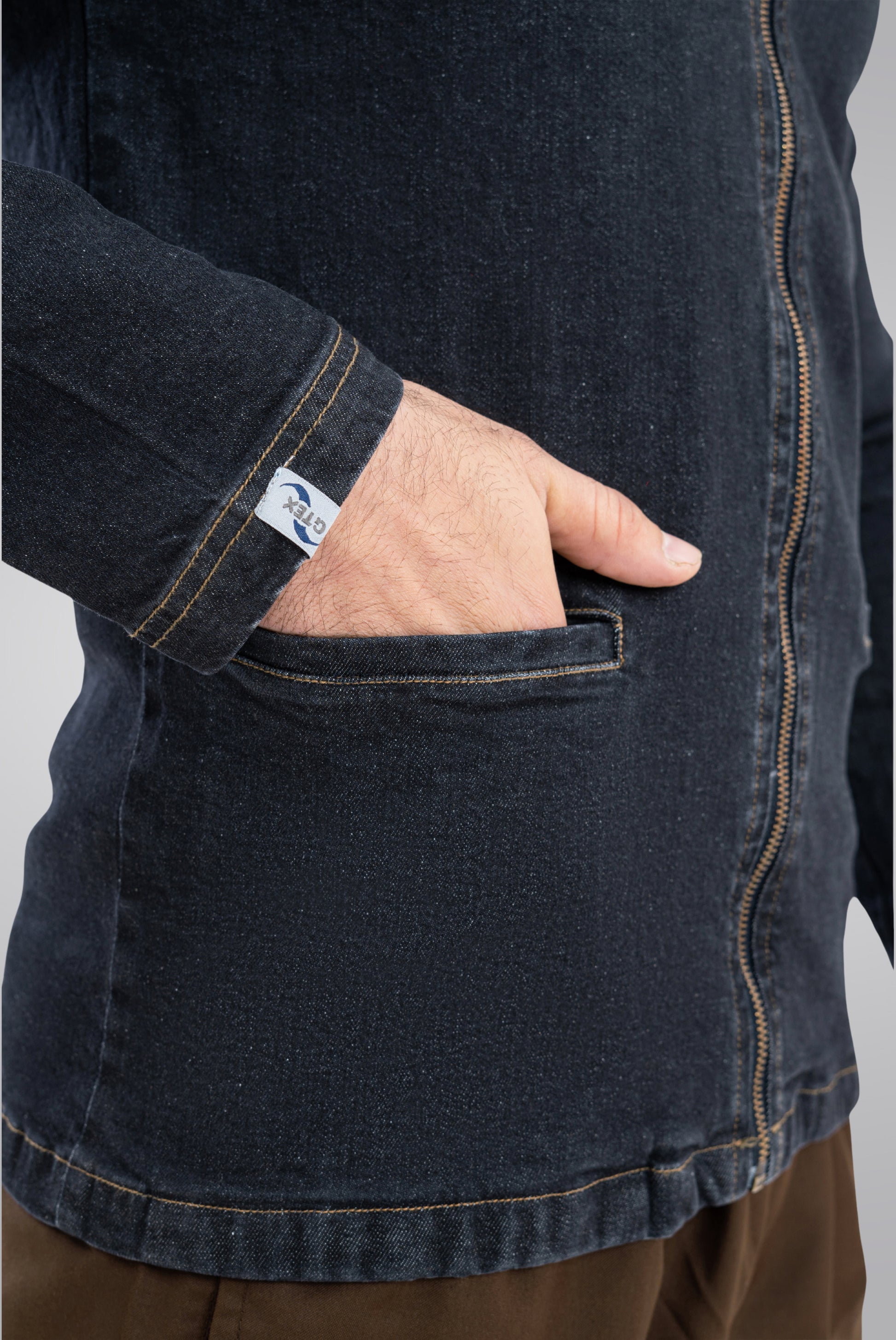 Crafted from premium denim, this black upper jacket delivers timeless versatility and durability. The structured fit provides a polished silhouette suitable for both casual and semi-formal settings. Quality stitching and reinforced seams ensure longevity, while the classic black hue pairs effortlessly with any wardrobe. An essential layering piece that combines functionality with enduring style.