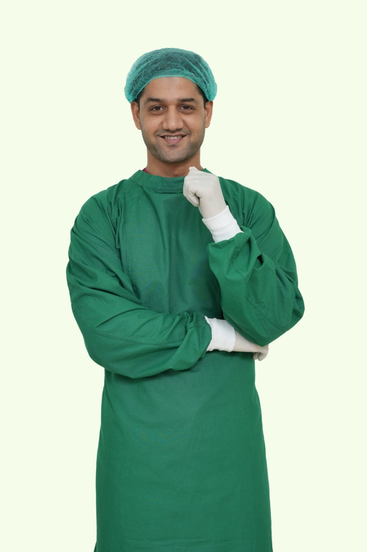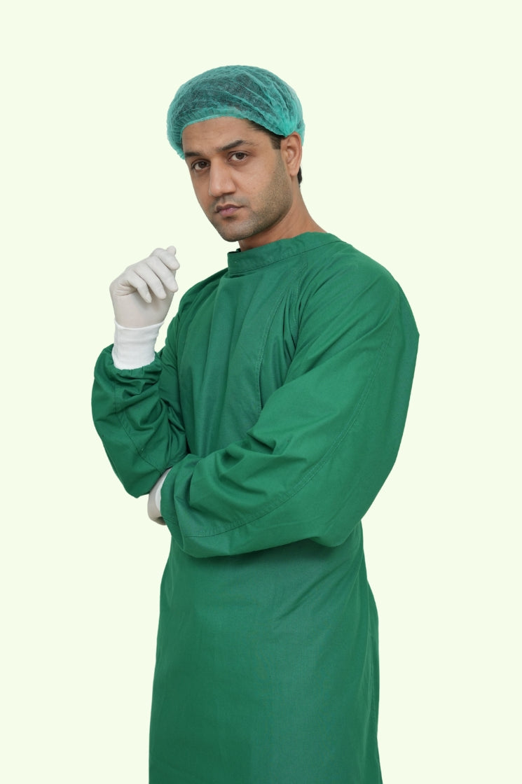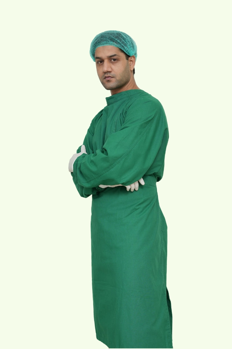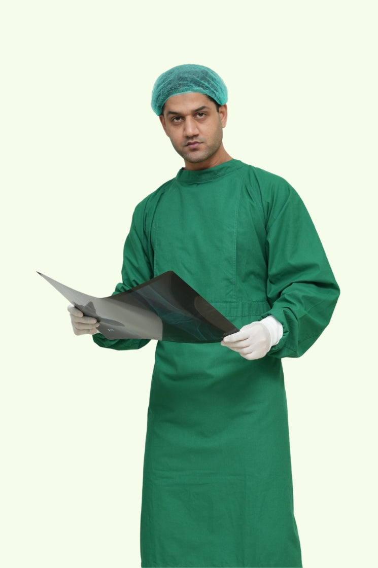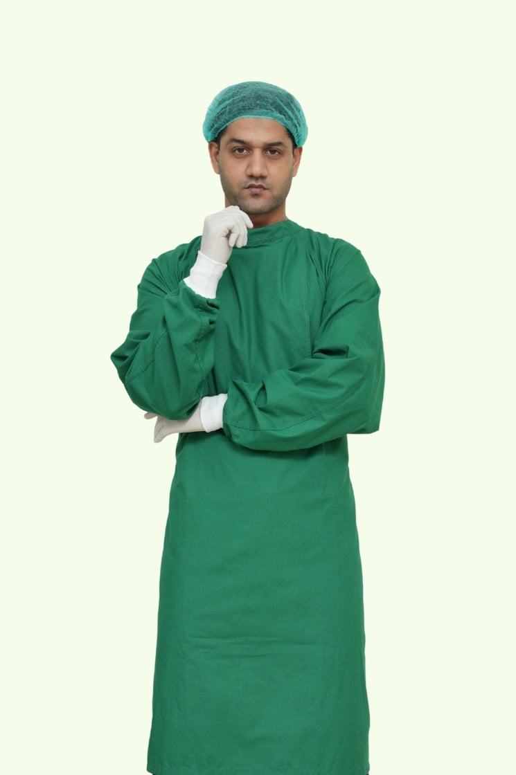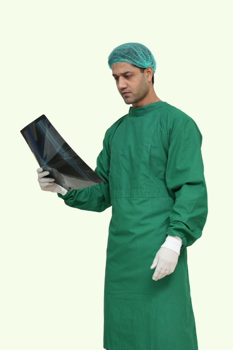 Our Surgeon Gown is crafted from high-quality Pc fabric, known for its long lasting durability and resistance to color fading, ensuring it maintains a fresh appearance even after multiple washes. Its back open design with an adjustable knot, allowing for customizable fit that enhances comfort and ease of movement